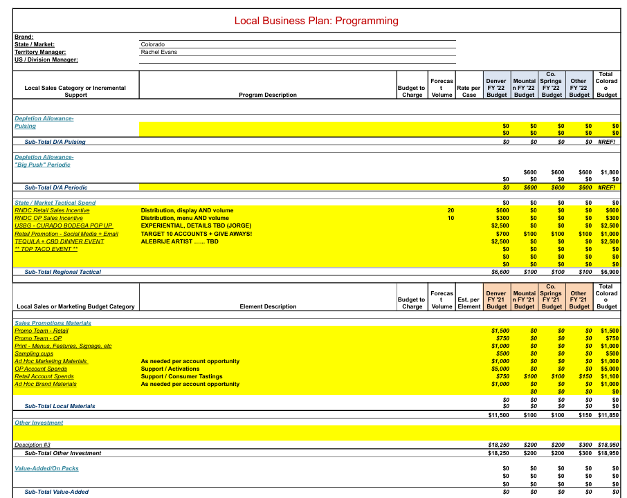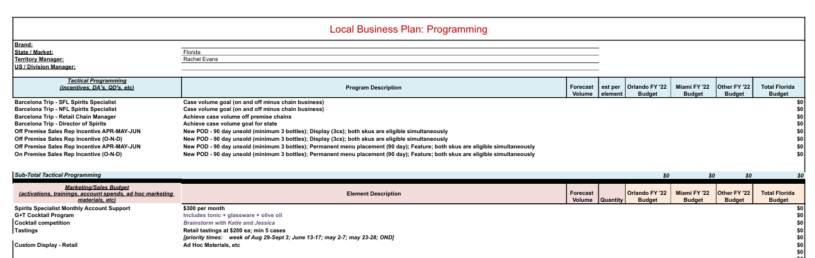 Chain team sales sheet